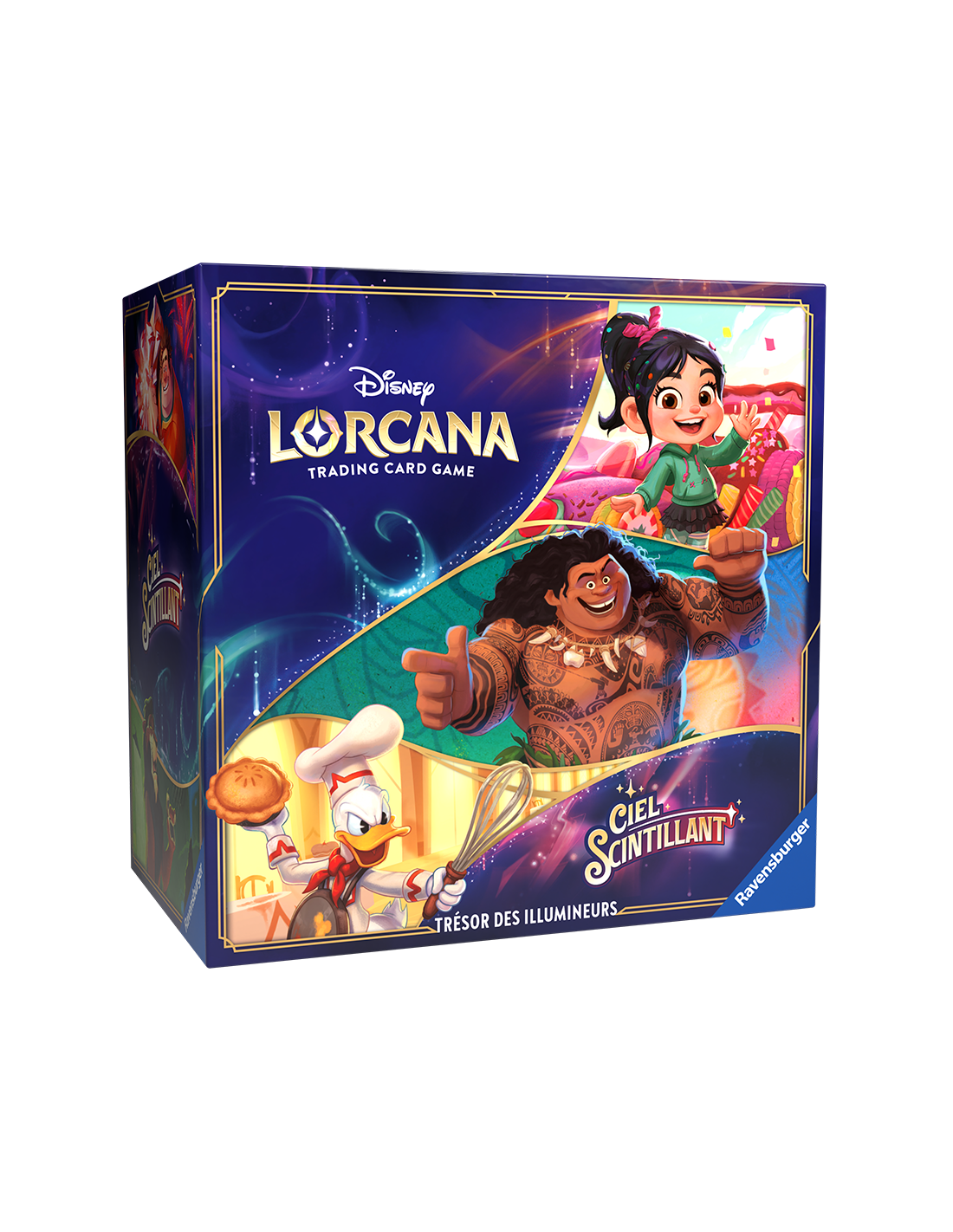 Le Chapitre 5 de Disney Lorcana : Ciel Scientillant est enfin là ! La fête vient de commencer et vous êtes invités ! Réunissez vous auprès des Illumineurs et des glimmers près du Grand Illuminarium pour profiter des jeux, de la nourriture, de la musique, de la danse, et bien plus encore. La liste des convives compte de nouveaux visages comme ceux issus de Les Mondes de Ralph et ses amis pixellisés de la salle d’Arcade Litwak, ainsi qu’Anna, Elsa et Olaf, tout juste sortis de leur dernière aventure dans la Forêt Enchantée. C’est un événement qui restera gravé dans les mémoires du royaume.