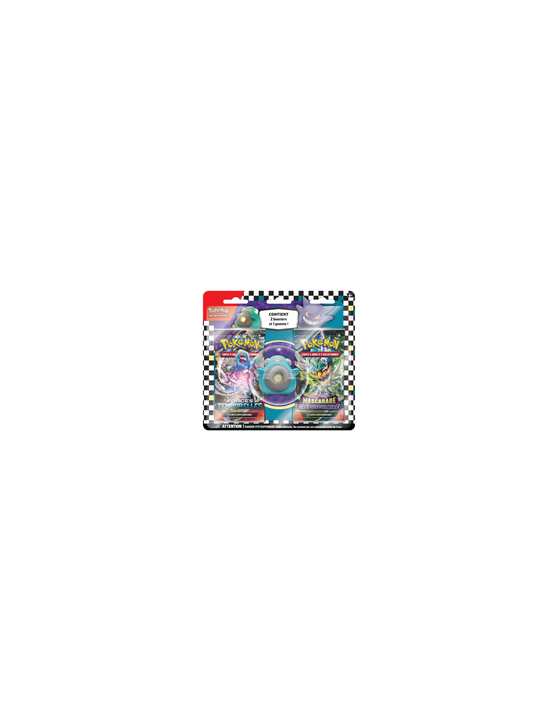 Dans ce tripack, vous trouverez 3 Boosters Pokémon EV06 Mascarade Crépusculaire, chacun renfermant des trésors de l'univers Pokémon. Bienvenue sur les terres de Septentria, un lieu où les humains et les Pokémon vivent en harmonie avec la nature. Découvrez les mystères du Pokémon légendaire masqué, Ogerpon, qui apparaît en tant que Pokémon-ex Téracristal...